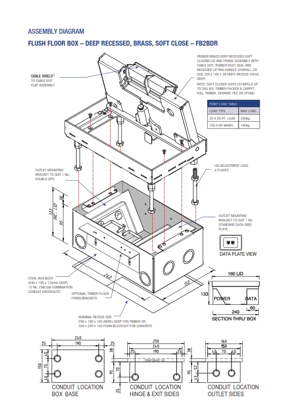 - Robust, large capacity cable exit flap with CableShield and brass lifting handle.