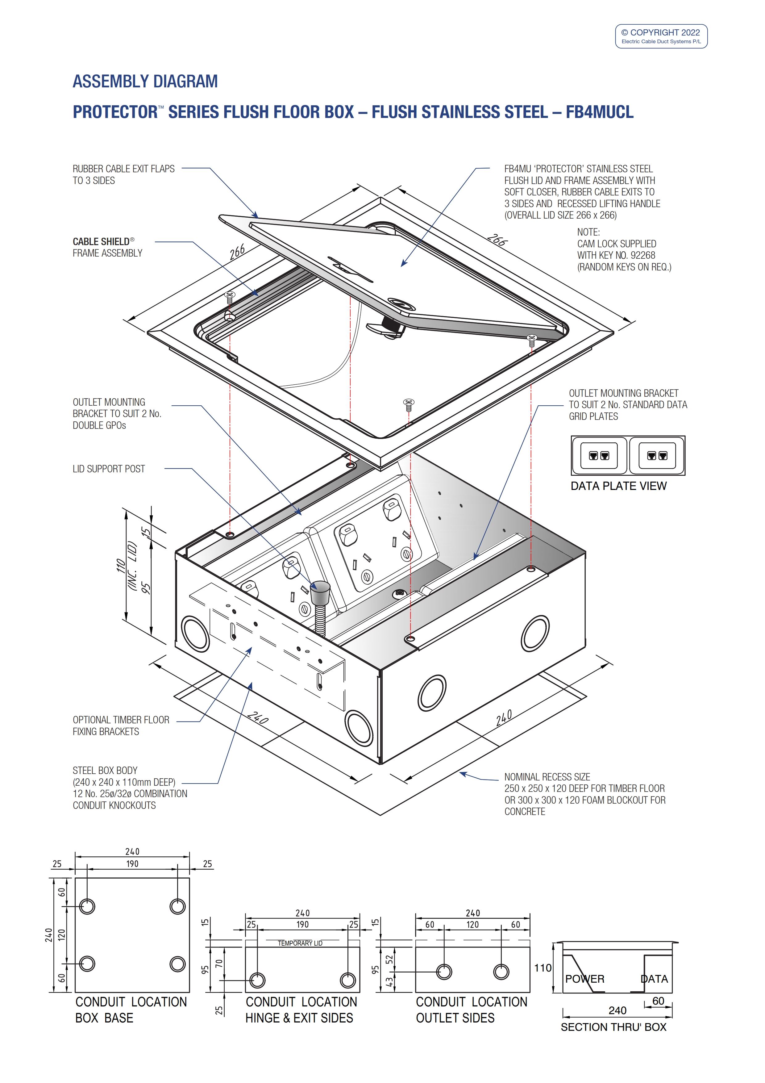 - A lockable floor box supplied with cam lock fitted. Cam locks can be keyed alike to key number 92268 or randomly keyed.