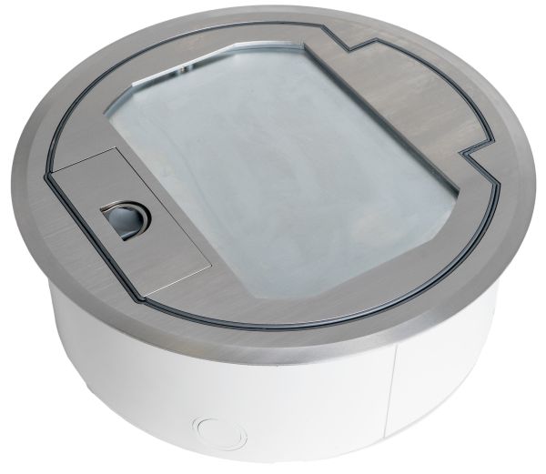 - The circular design of the canister and lid allows this box to be installed into existing concrete slabs. Simply core cut the appropriate size core hole and drop the floor box into position. No need to over cut and scabble square holes.