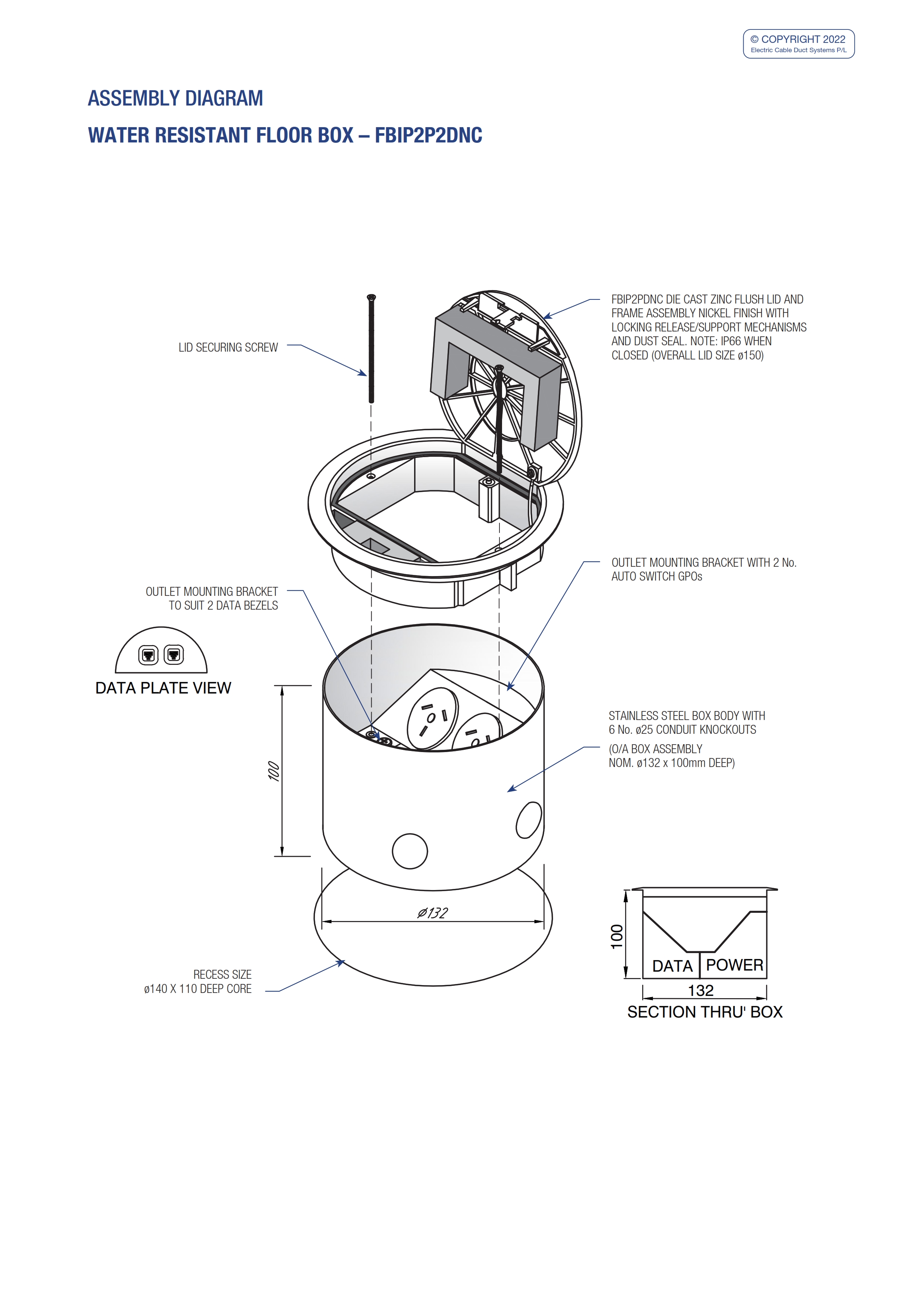- Capacity for 2 x single auto switch power outlets (supplied) and 2 x data bezel mounts (supplied).