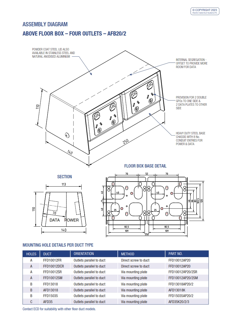 - Suitable for mounting on ECD floor ducts. Refer to assembly diagram for corresponding models.