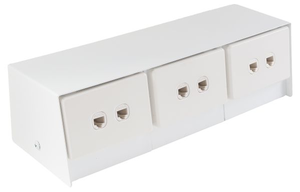 - Capacity for 6 standard outlet plates (3 x double power & 3 x Data and/or A.V.).