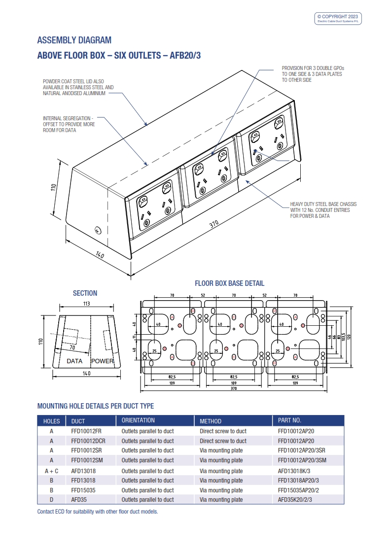 - Suitable for mounting on ECD floor ducts. Refer to assembly diagram for corresponding models.