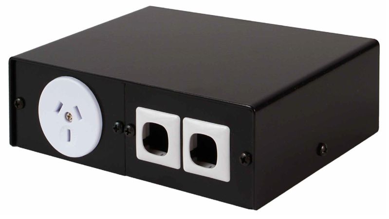 - Standard arrangement 1 x Universal 10/15 Amp single auto switch GPO (supplied) and 2 x data mounts (bezels supplied).