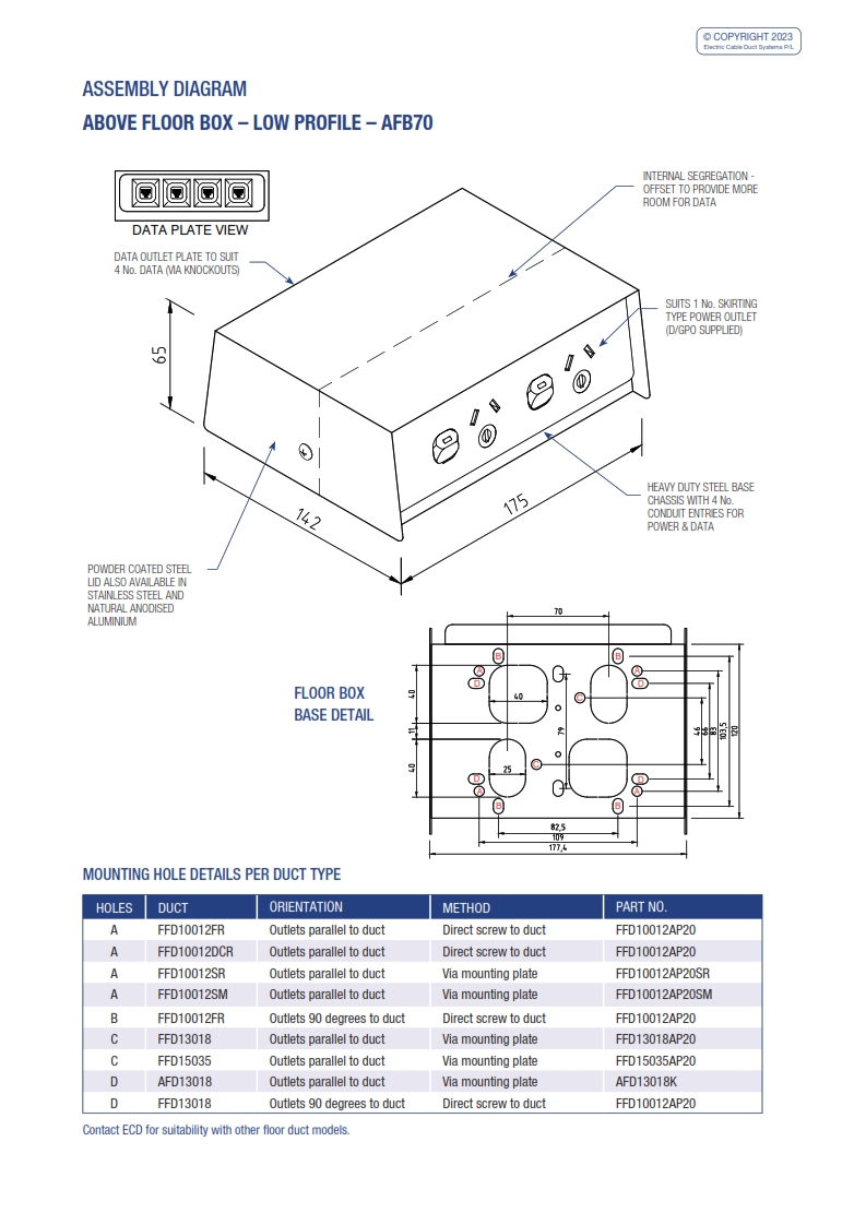- Suitable for mounting on ECD floor ducts. Refer to assembly diagram for corresponding models.