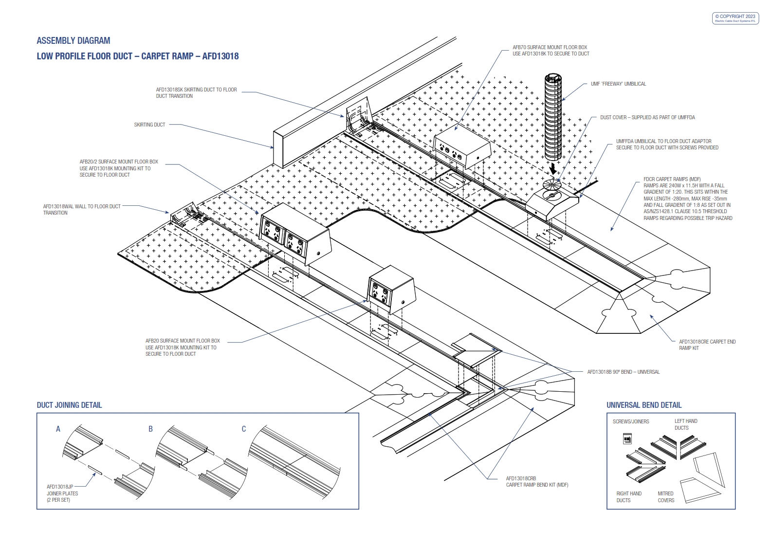 assist with easy on site installation. - Wall and skirting kits available for easy transition of cables into the duct body.