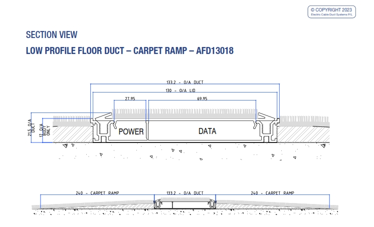 with offset barrier for greater data/comms capacity. - Extruded aluminium duct covers are suitable for foot traffic.