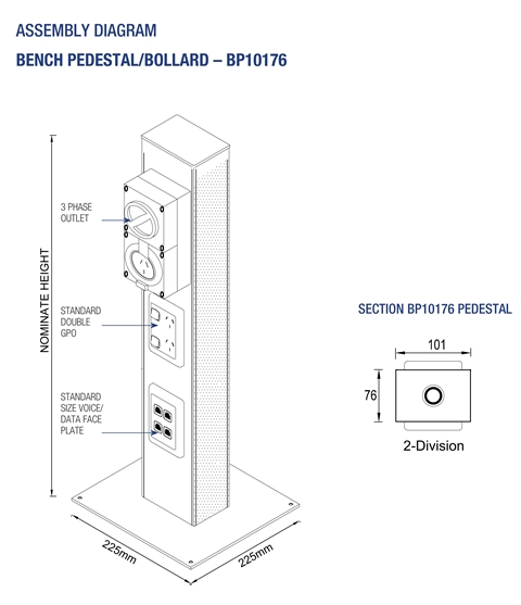 extruded aluminium pedestal. - Designed to accommodate three phase outlets
