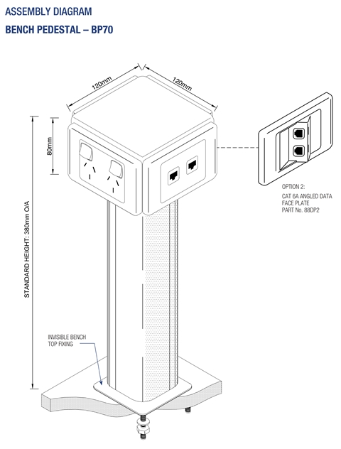 - The BP70 Pedestal is designed to be mounted to a bench top where wall fixing is not possible.