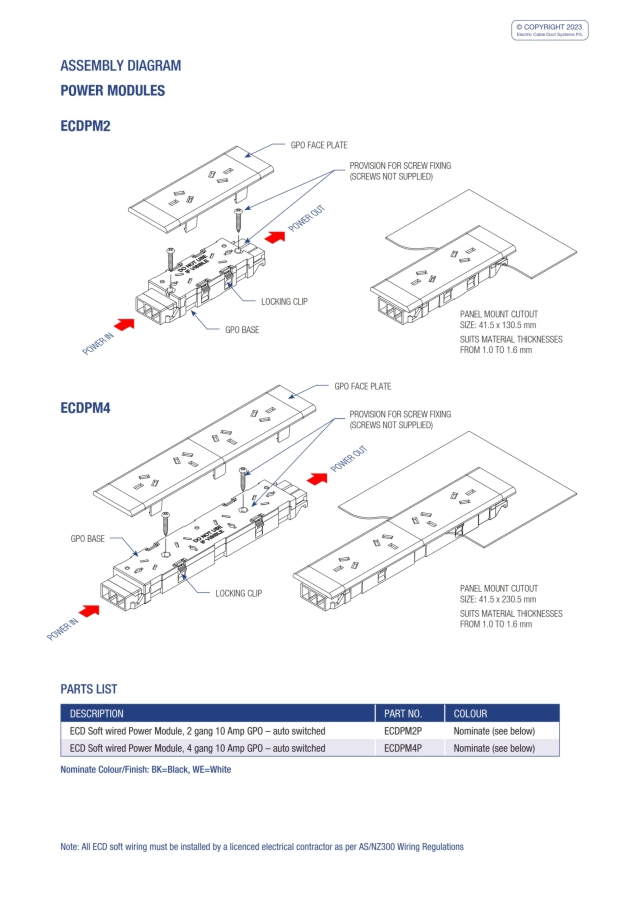 | Capacity: | 2 or 4 gang auto switch GPOs – 10 Amp |