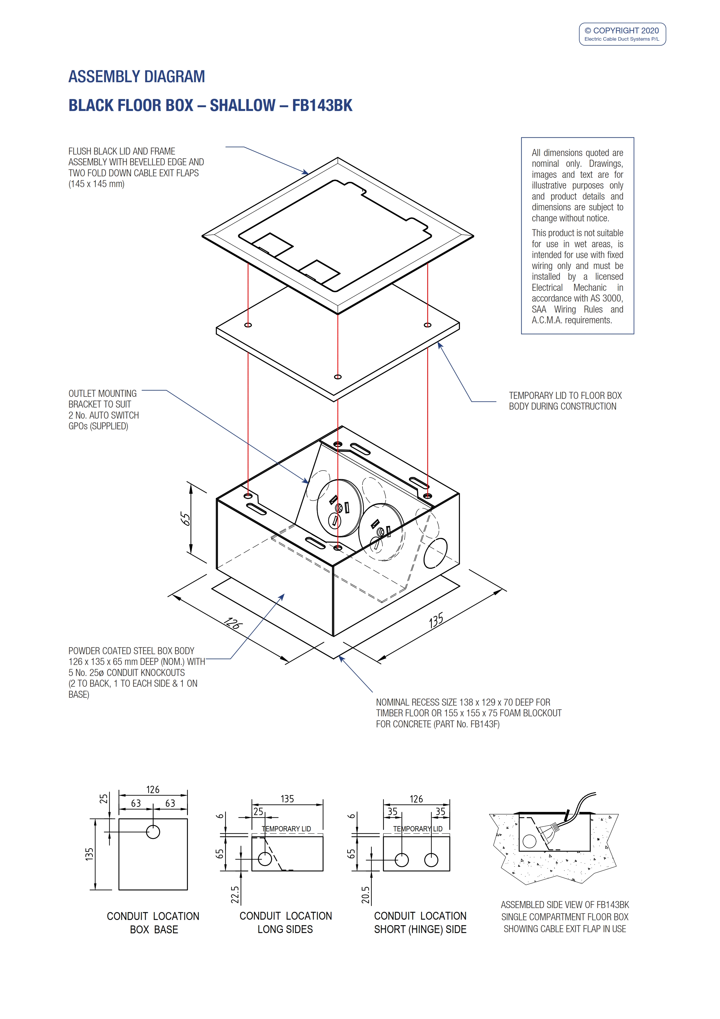- Compact and stylish, the FB143BK Flush Floor Box provides ready access to power outlets recessed in the floor.