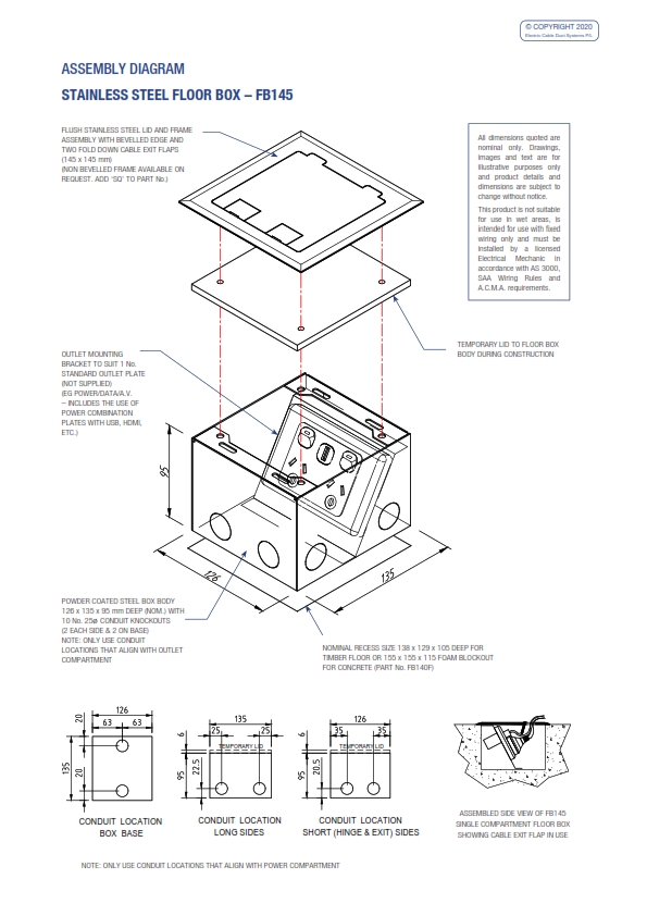 - Compact and stylish, the FB145 Flush Floor Box provides ready access to power (or communication) outlets recessed in the floor.