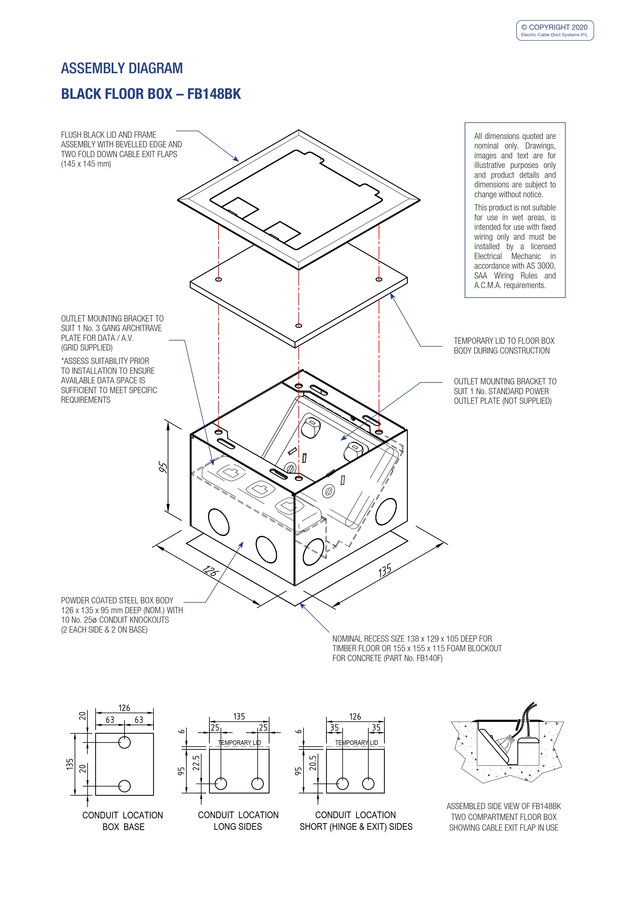 - Compact and stylish, the FB148BK Series of Flush Floor Boxes provide ready access to power and communication outlets recessed in the floor.
