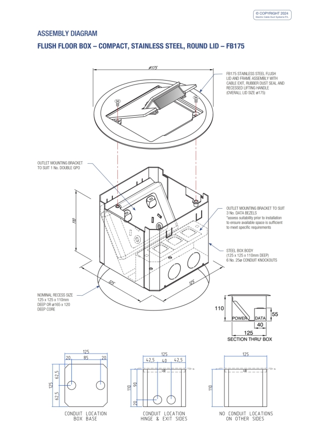 - Compact and stylish, the FB175 Series of Flush Floor Boxes provide ready access to power and communication outlets recessed in the floor.