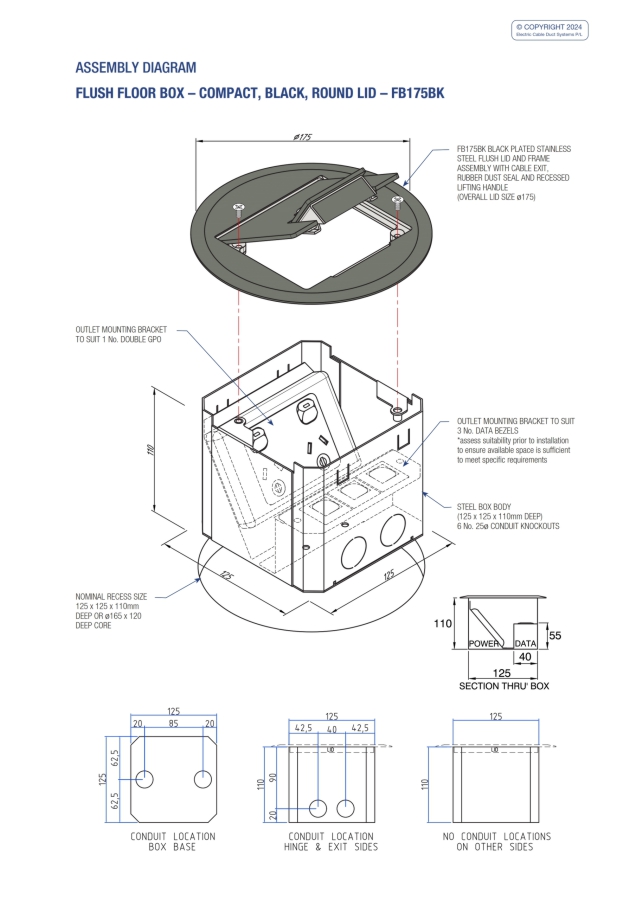 - Compact and stylish, the FB175BK Series of Flush Floor Boxes provide ready access to power and communication outlets recessed in the floor.