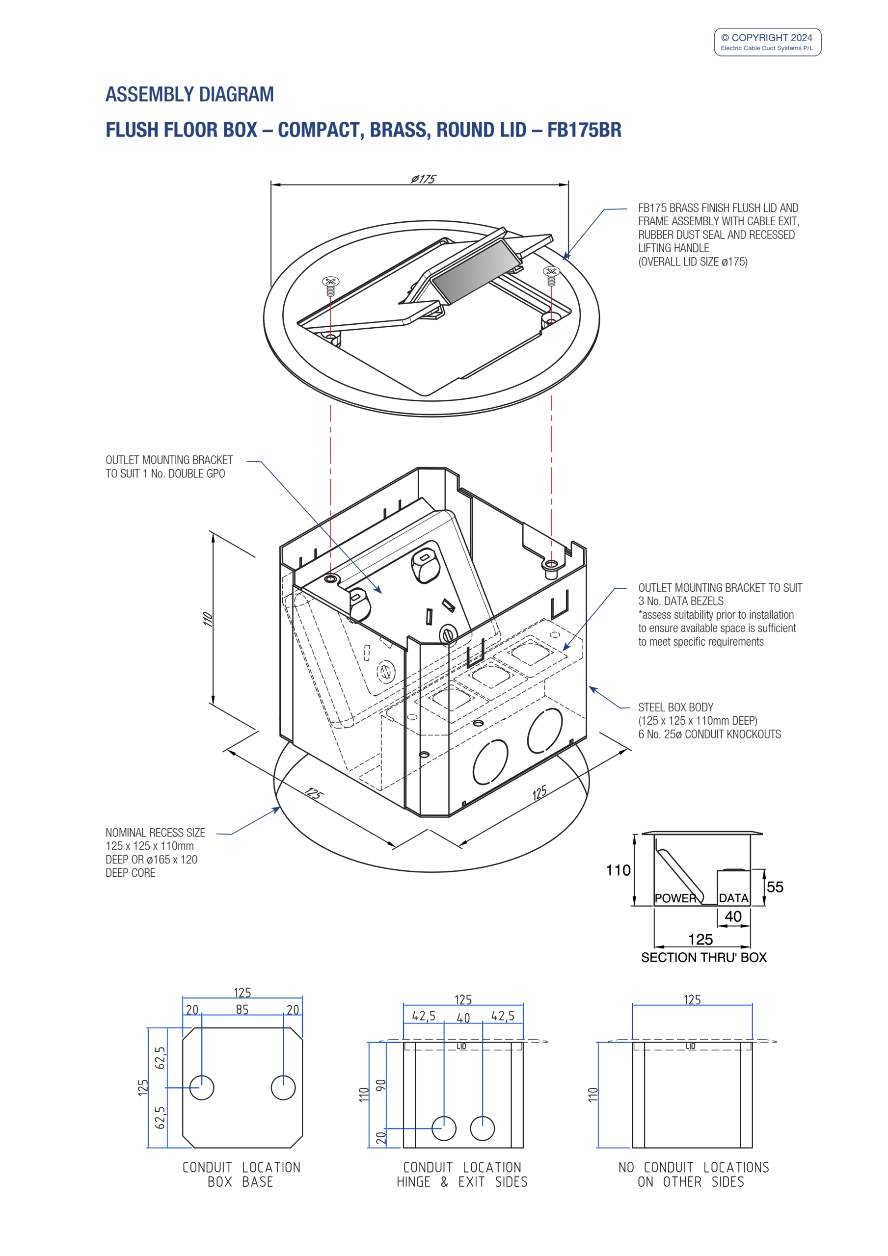 - Compact and stylish, the FB175 Series of Flush Floor Boxes provide ready access to power and communication outlets recessed in the floor.
