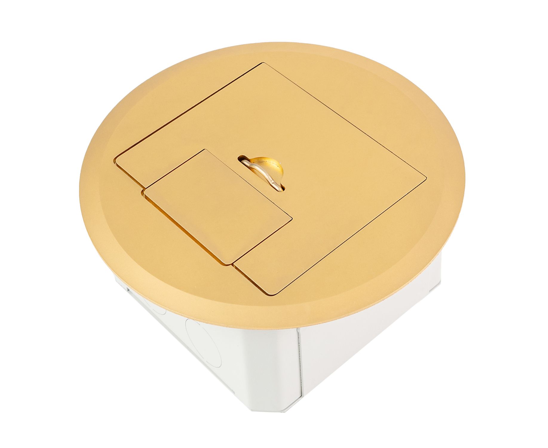 Flush Floor Box Shallow, Compact, Brass, Round Lid
