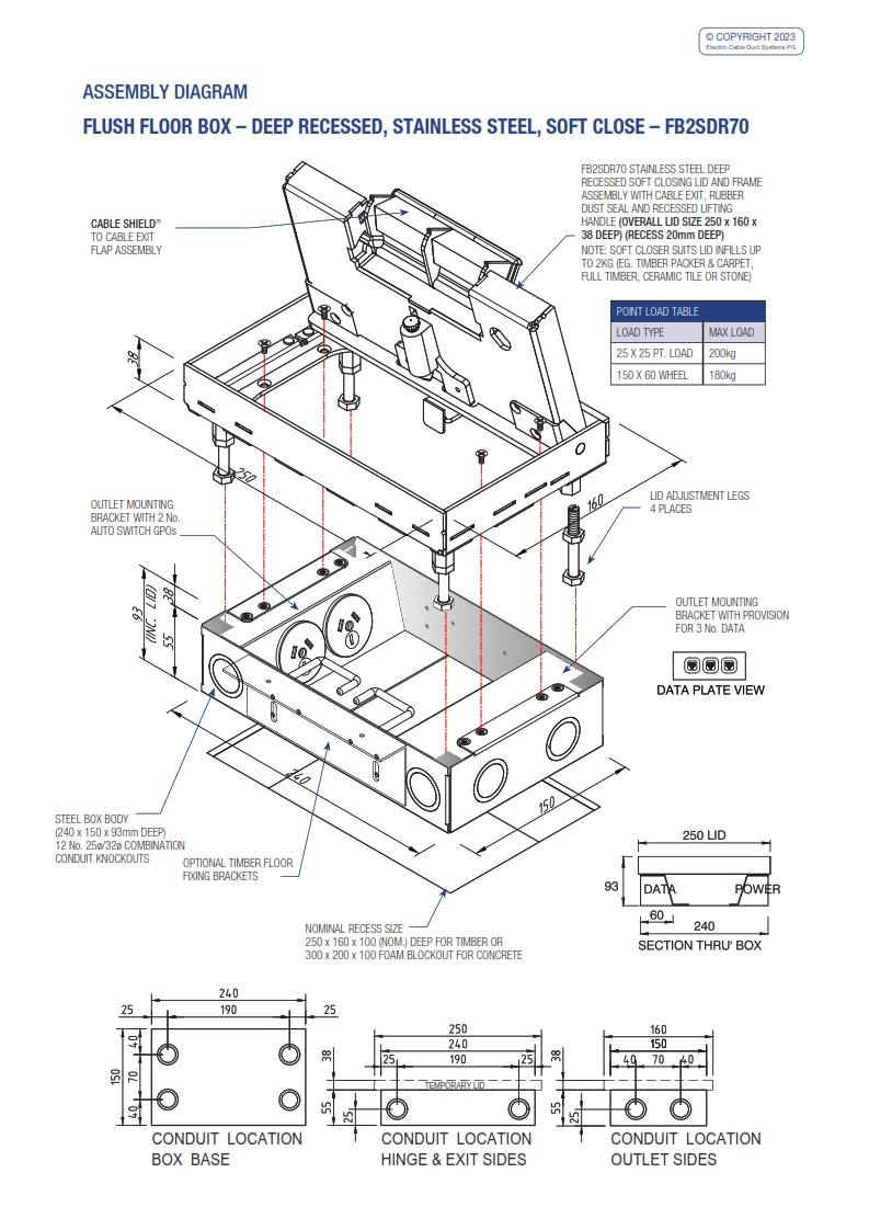 - Robust, large capacity cable exit flap with CableShield and stainless lifting handle.