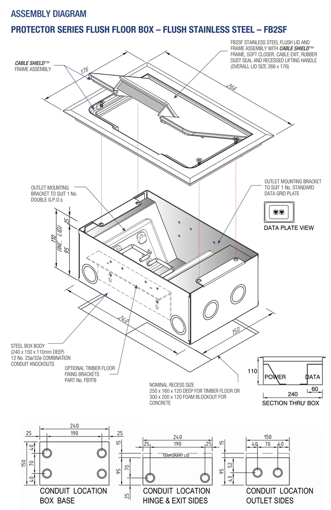- Modular box body and lid design, interchangeable with plastic and other lids in the ECD floor box range.