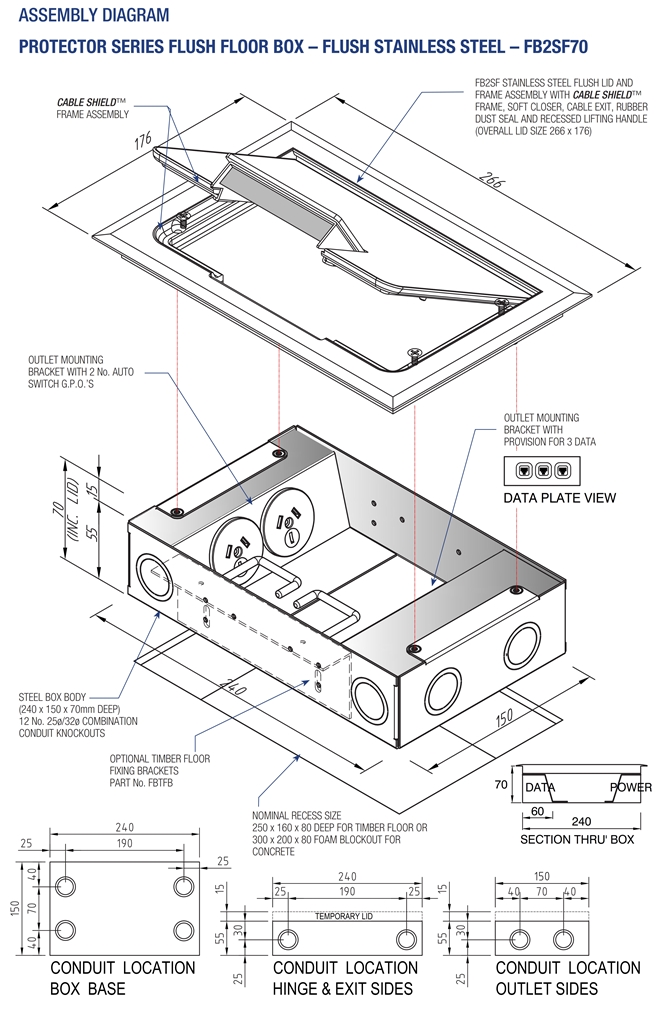- Modular box body and lid design, interchangeable with plastic and other lids in the ECD floor box range.