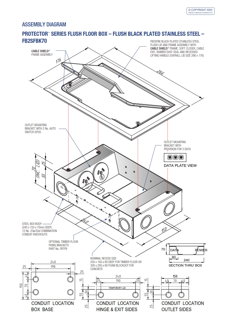- Modular box body and lid design, interchangeable with plastic and other lids in the ECD floor box range.