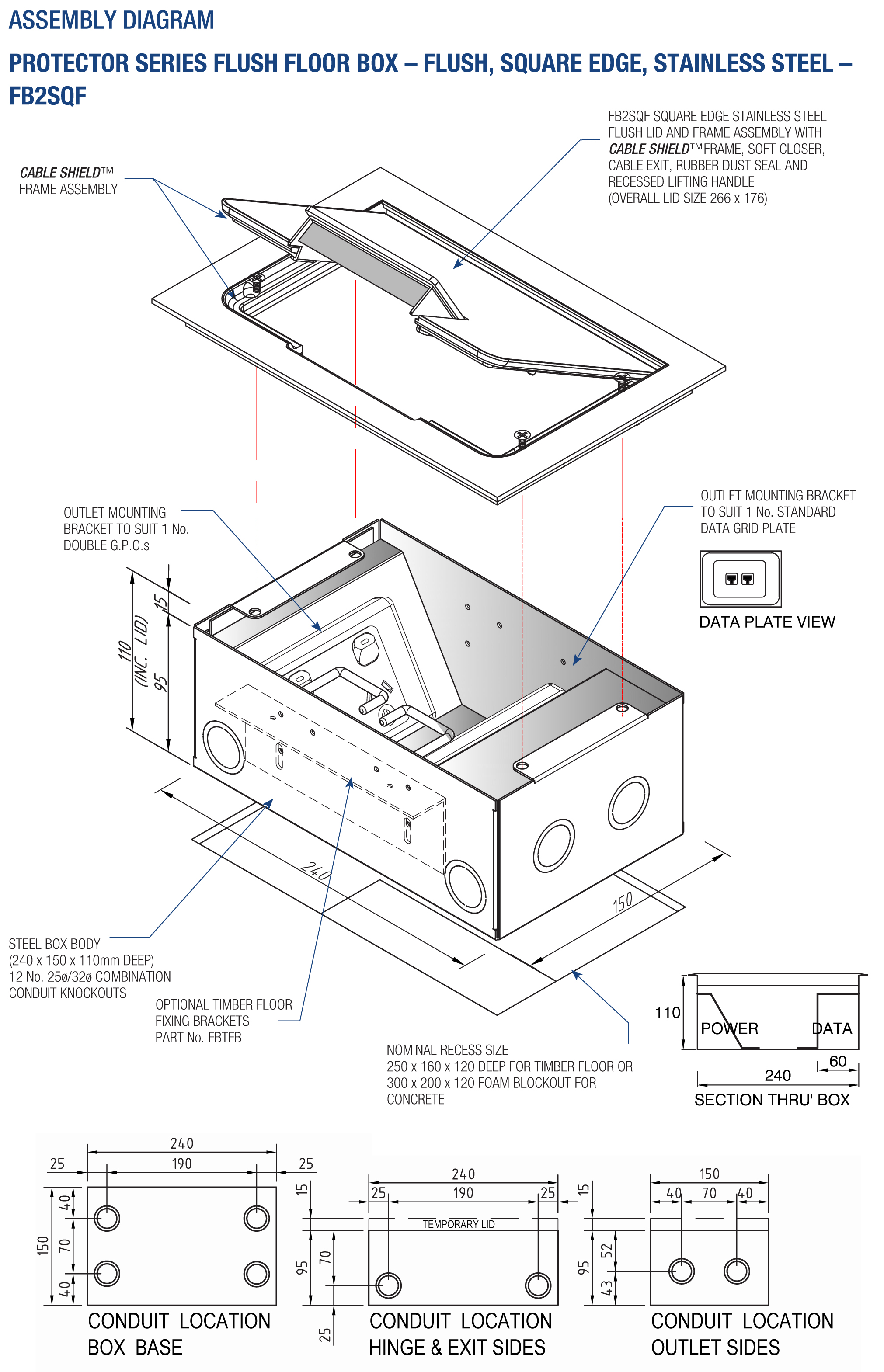 - Square Edged Stainless Steel Lid and Frame (not bevelled) to allow flush fitting for floor finish (typically timber, tiles or vinyl).