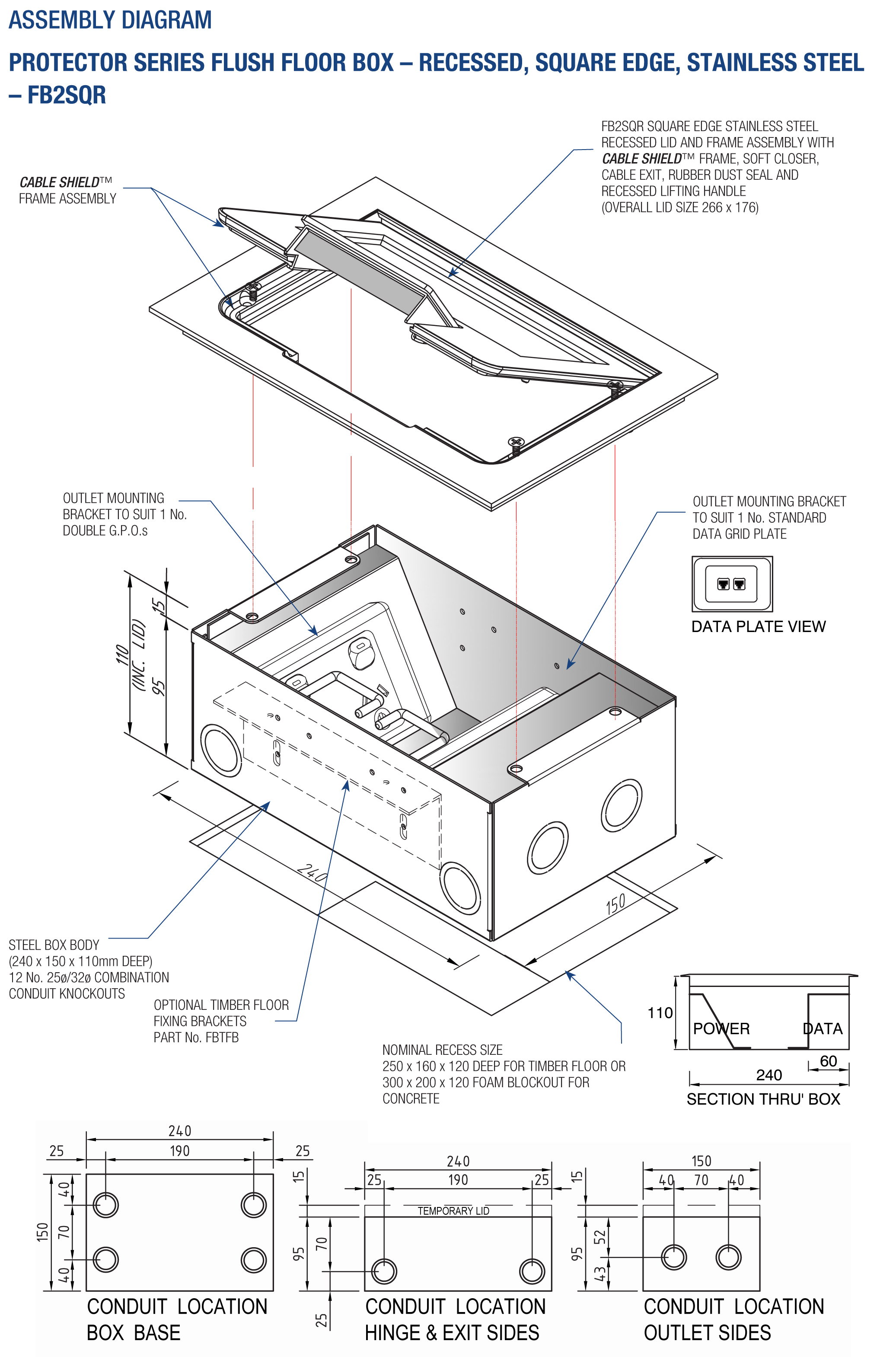 - Modular box body and lid design, interchangeable with plastic and other lids in the ECD floor box range.