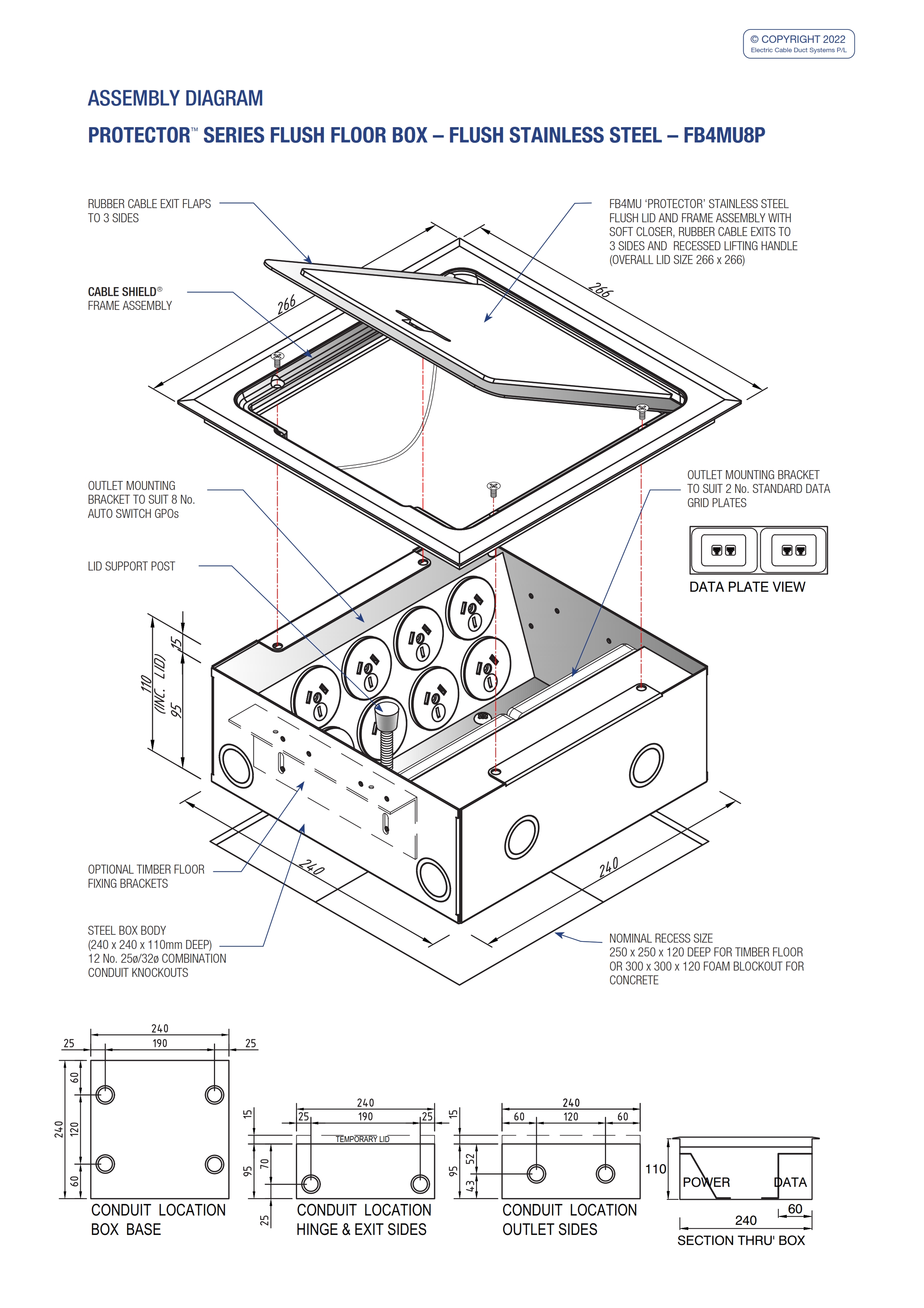 - Modular box body and lid design, interchangeable with plastic and other lids in the ECD® floor box range.