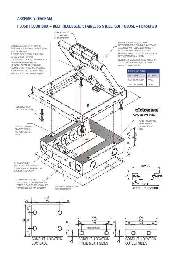 - Robust, large capacity cable exit flap with CableShield and stainless lifting handle.