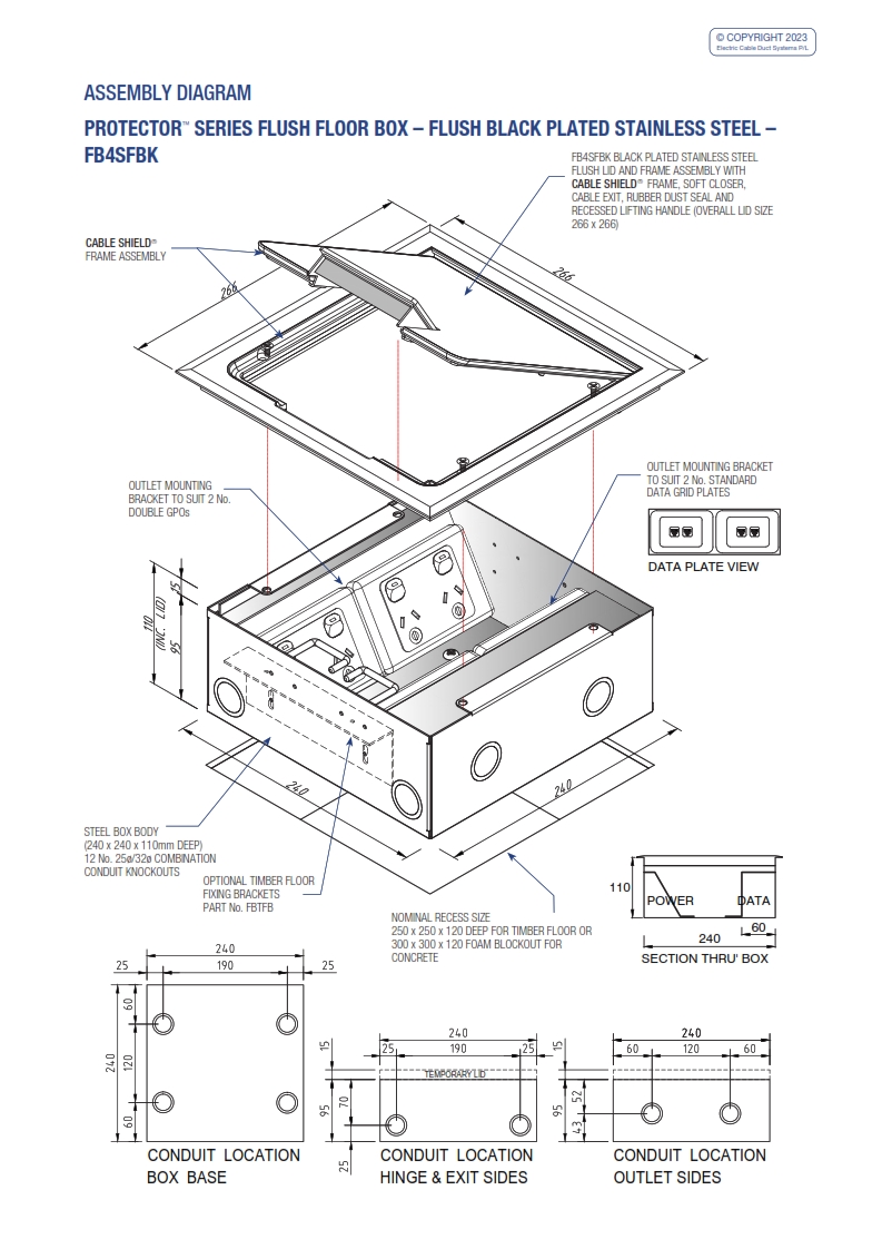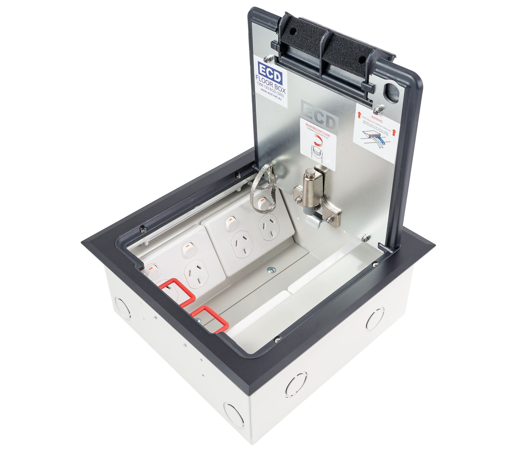 - Modular box body and lid design, interchangeable with plastic and other lids in the ECD® floor box range.