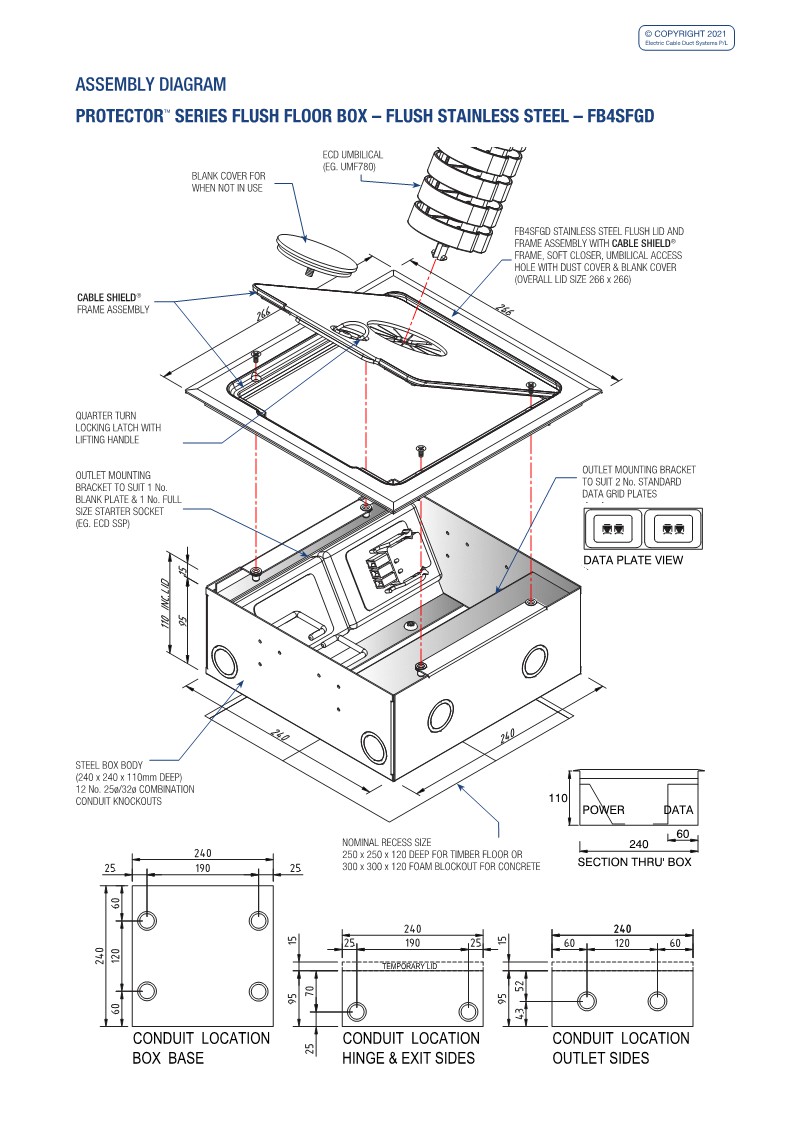 - Modular box body and lid design, interchangeable with plastic and other lids in the ECD® floor box range.