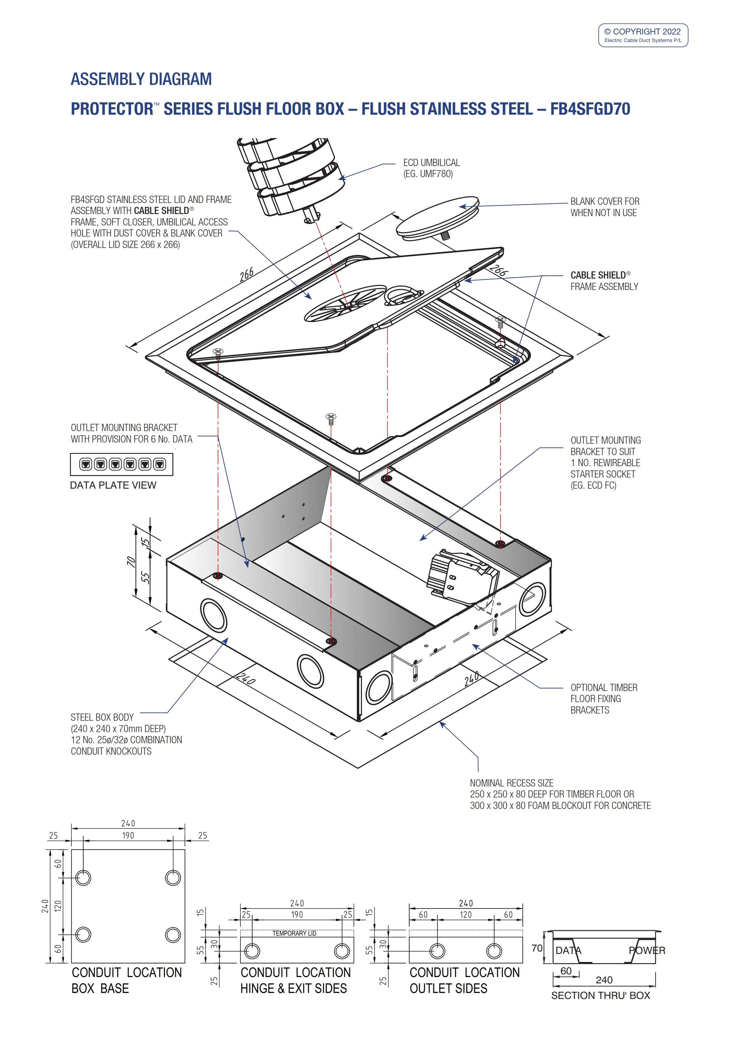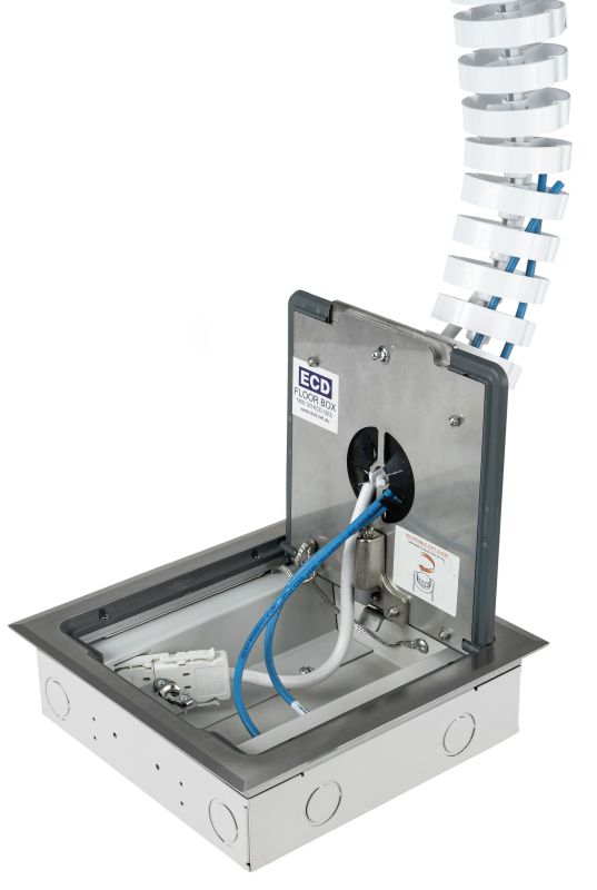 - Modular box body and lid design, interchangeable with plastic and other lids in the ECD® floor box range.