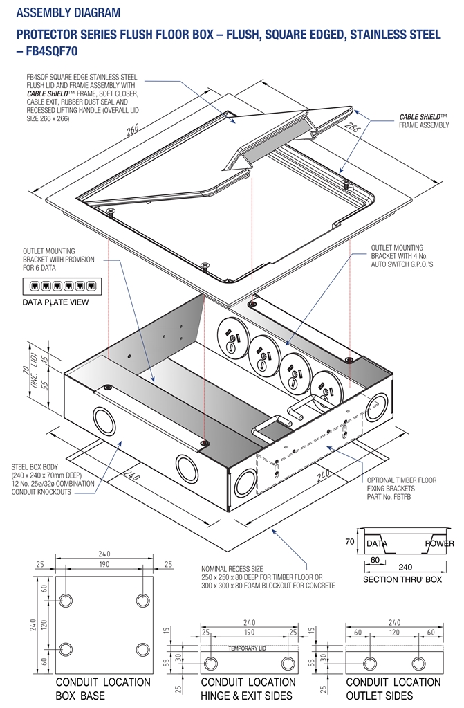 - Modular box body and lid design, interchangeable with plastic and other lids in the ECD floor box range.