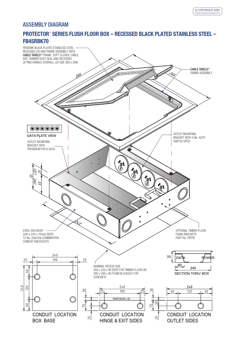 - Modular box body and lid design, interchangeable with plastic and other lids in the ECD® floor box range.