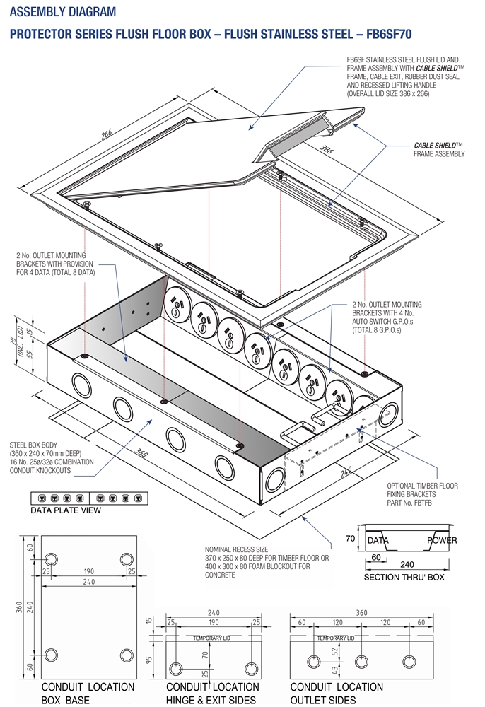 - Modular box body and lid design, interchangeable with plastic and other lids in the ECD floor box range.