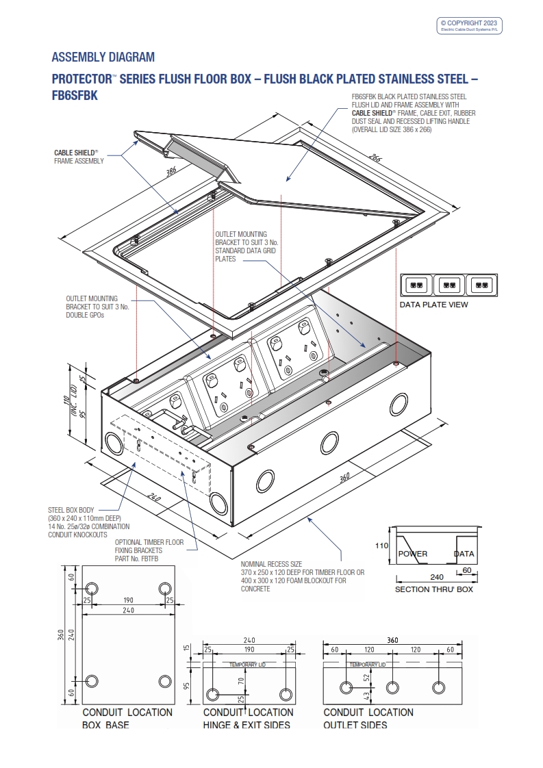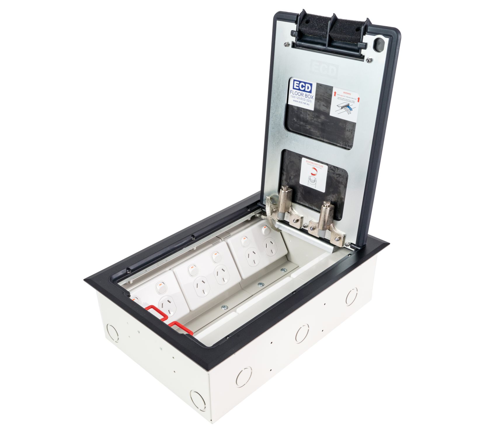 - Modular box body and lid design, interchangeable with plastic and other lids in the ECD® floor box range.