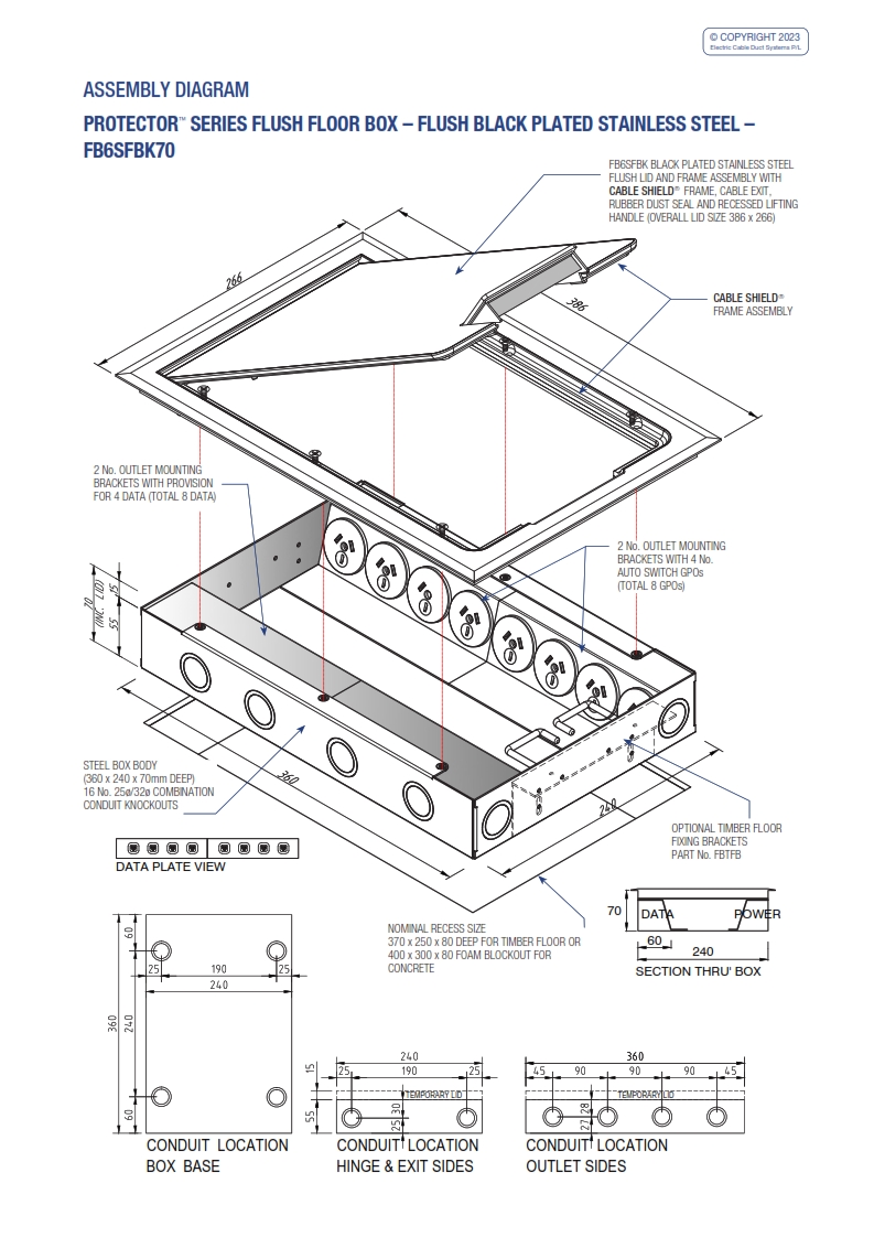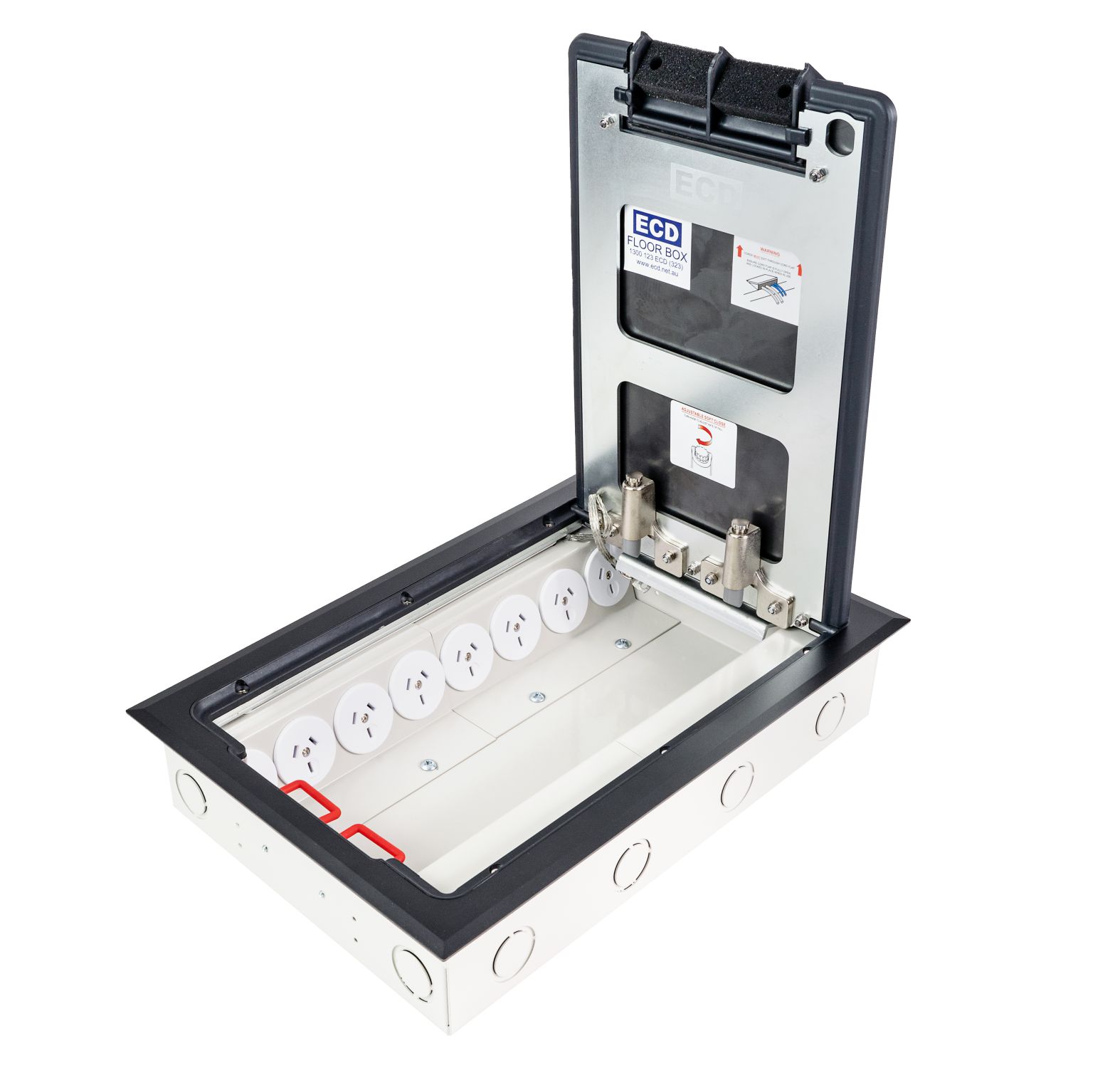 - Modular box body and lid design, interchangeable with plastic and other lids in the ECD® floor box range.