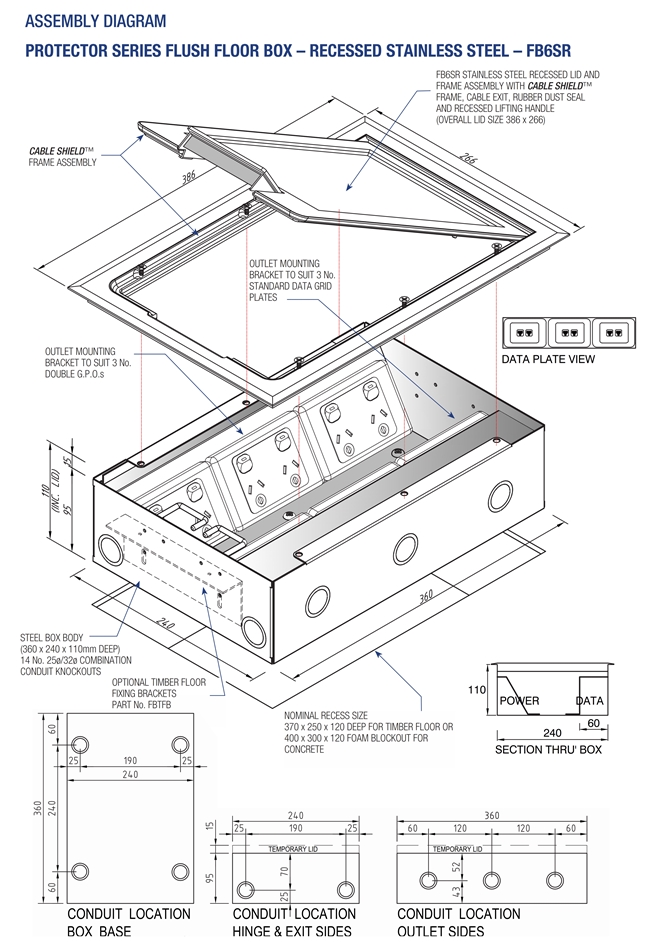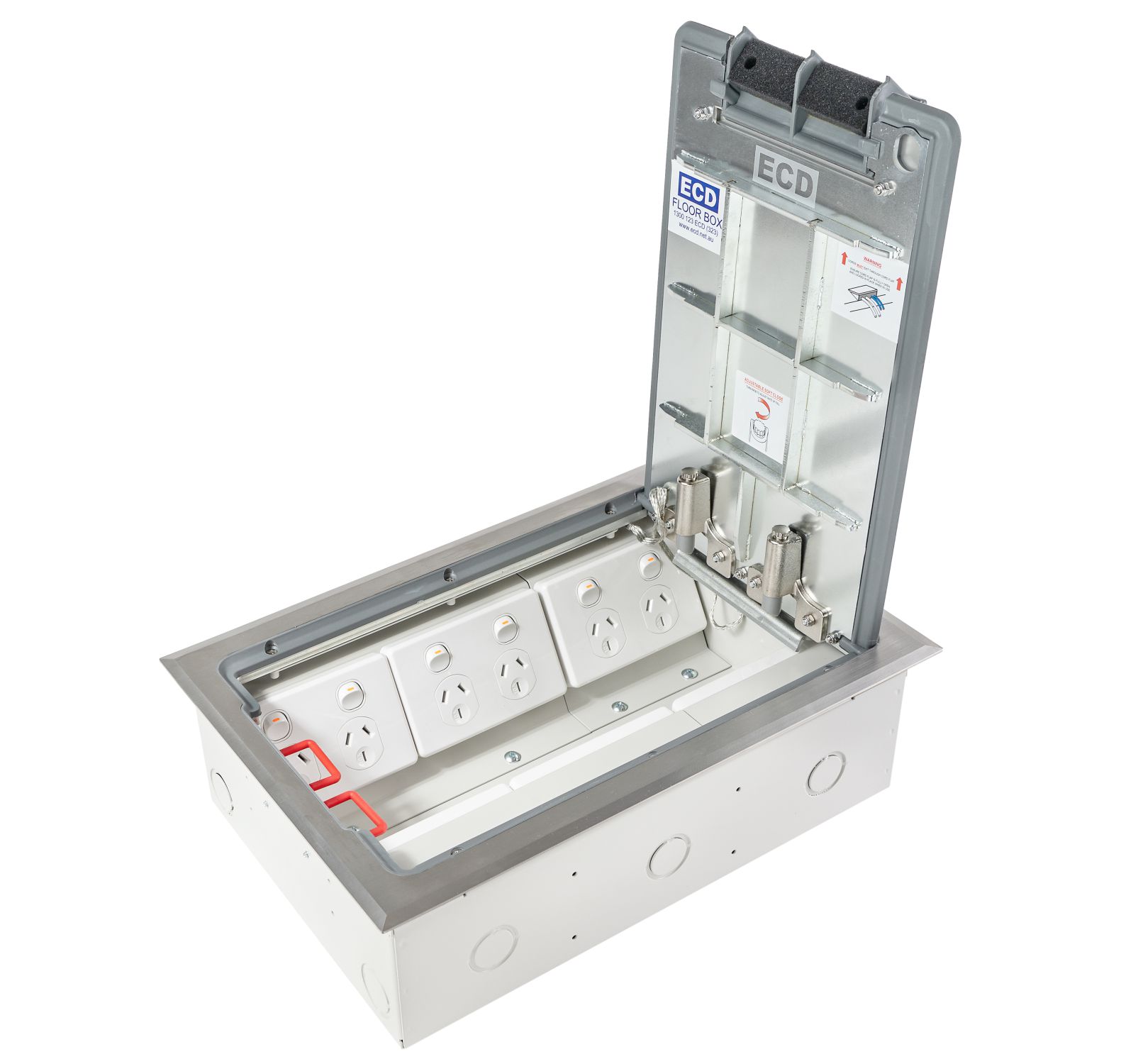 with plastic and other lids in the ECD floor box range. - Supplied with temporary construction lid.