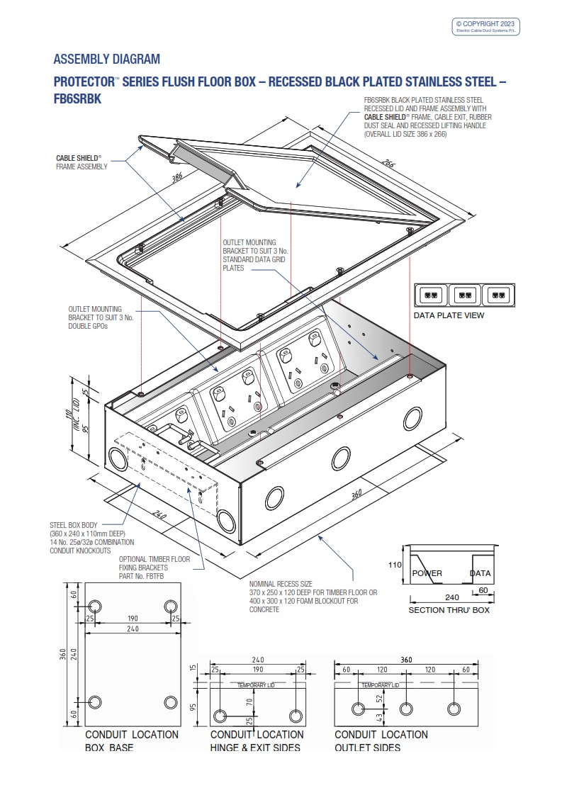 - Modular box body and lid design, interchangeable with plastic and other lids in the ECD® floor box range.
