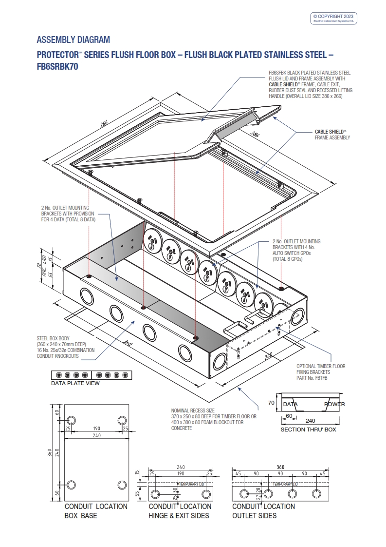 - Modular box body and lid design, interchangeable with plastic and other lids in the ECD® floor box range.
