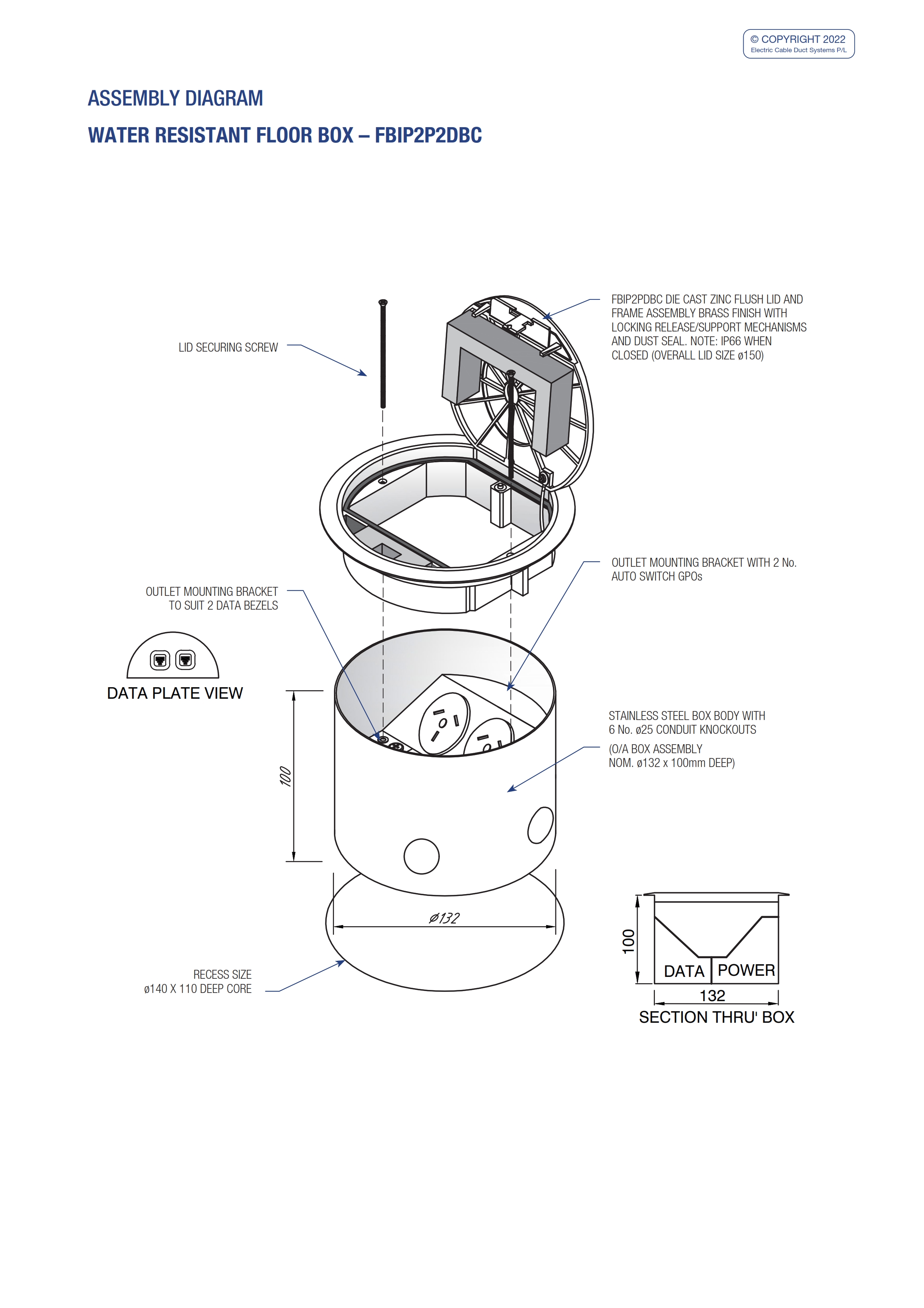 - Capacity for 2 x single auto switch power outlets (supplied) and 2 x data bezel mounts (supplied).