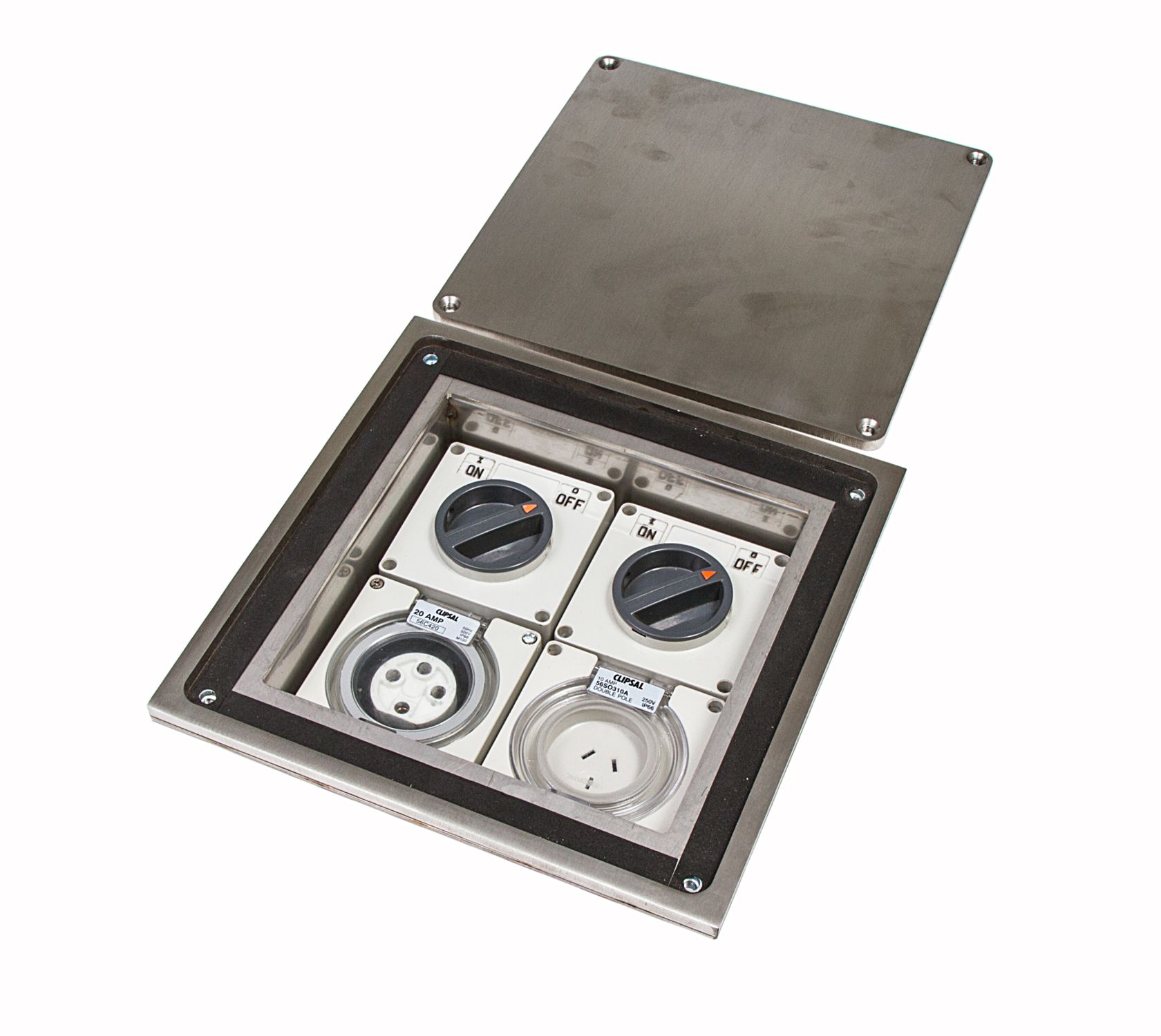 - Capacity for 4 No. IP66 Industrial socket modules (enclosures supplied, excludes socket outlets).