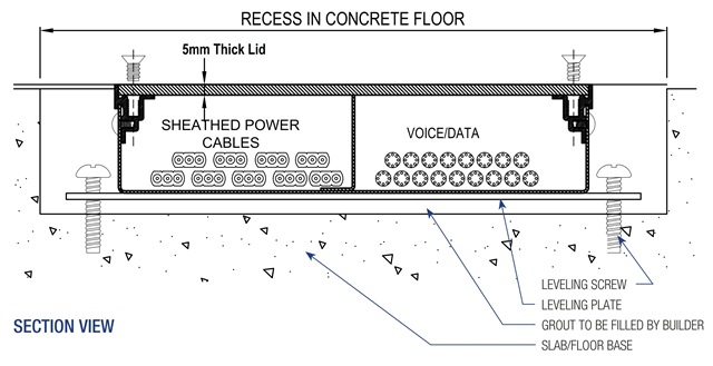 - A full range of flush floor cross-over and tee junction boxes are available.