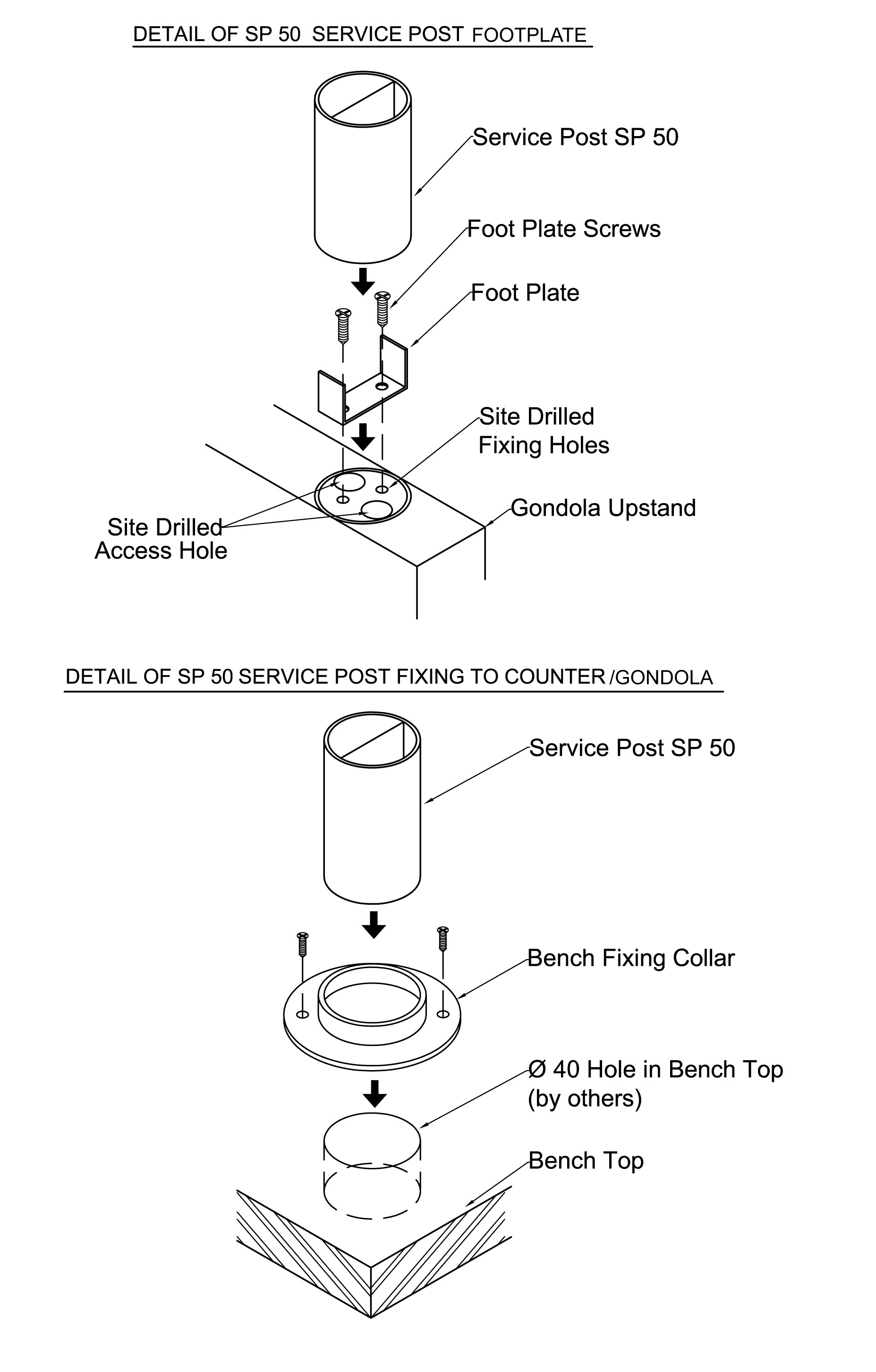 - A neat and attractive extruded aluminium post for the distribution of power and data cables from the ceiling space to the work areas below.