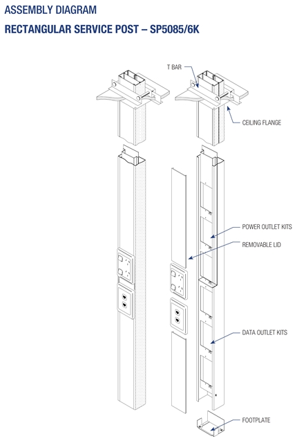 - A neat and attractive extruded aluminium post for the distribution of power and voice/data cables from the ceiling space to the work areas below.