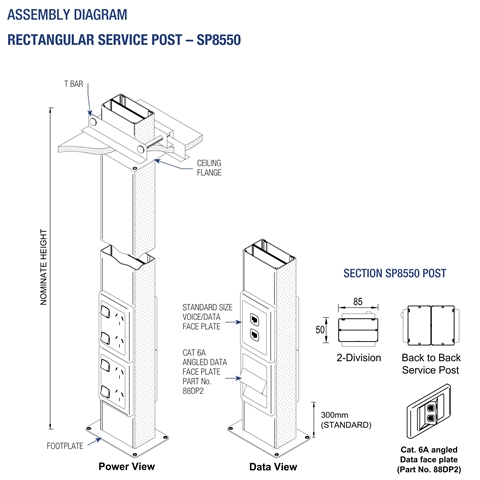 - A neat and attractive extruded aluminium post for the distribution of power and voice/data cables from the ceiling space to the work areas below.
